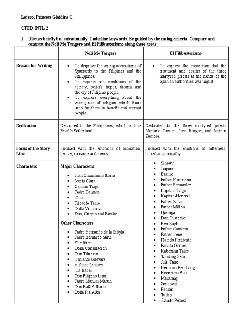 Rizal 3 Docx 1 Comparative Table On The Characters Of The Noli Mi Tangere And Elfilibusterismo And The Social Issues Conditions Each Represent Noli Me Course Hero