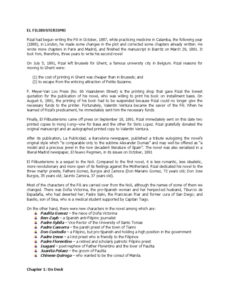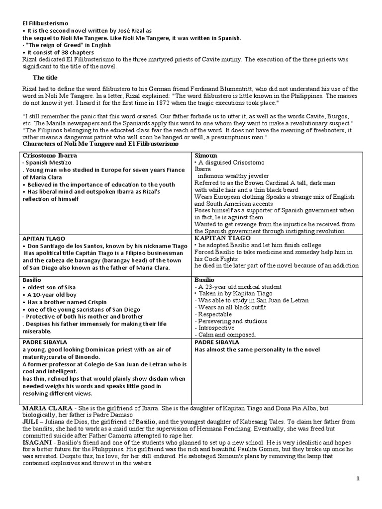 Characters of El Filibusterismo. EL FILIBUSTERISMO It is the second novel written by José Rizal as the sequel to Noli Me Tangere. As Juli grew up Tales became more successful and.