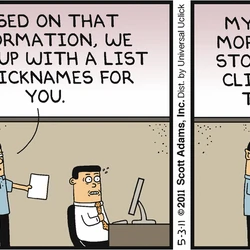 Include a mix of upper and lower case Dilbert continues to read Use different passwords for each system change once a month do not write anything down. Adams has said that the phallic symbolism was intentional in Seven Years of Highly Defective. Dilberts so-called pet dog is a powerful and corrupt individual who seeks world dominance Extant The Garbageman.