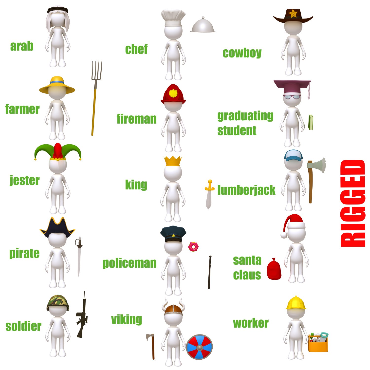 Stickman 15 Characters Collection Rigged 3d Model In Man 3dexport