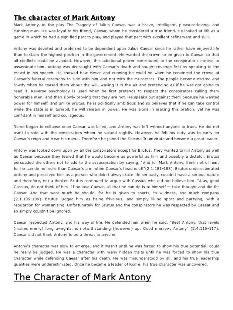 Character Of Antony Pdf Mark Antony Julius Caesar
