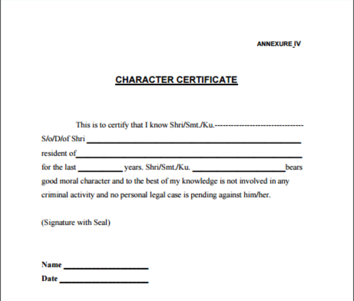 Click the Get form key to open it and move to editing. Download free printable Character Certificate Form samples in PDF Word and Excel formats. To avail the service Citizen has to log in to the Portal.